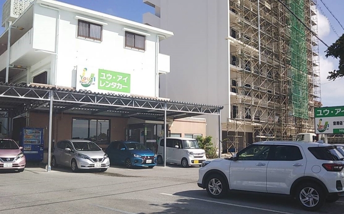 「ユウ・アイレンタカー」の看板の前でお待ち頂けましたら、順次到着した送迎バスでご案内致します。(約20分間隔)